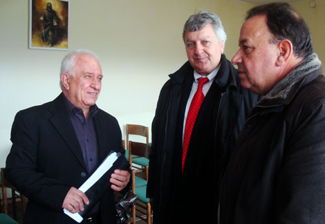 Александър Шишков (вдясно), председател на областната организация на Кооперативния съюз и Илия Шопов, директор на „Хебъркооп“ АД, поздравиха след събранието в председателя на кооперация „Средногорие“, Панагюрище, и в неформална среда обсъдиха финансовите резултати на кооперацията през 2014 г. По обем панагюрската кооперация е на второ място в областта, но по печалба дори е на първо, подчертаха Шишков и Шопов пред „Време“. Двамата са членове на панагюрската кооперация.