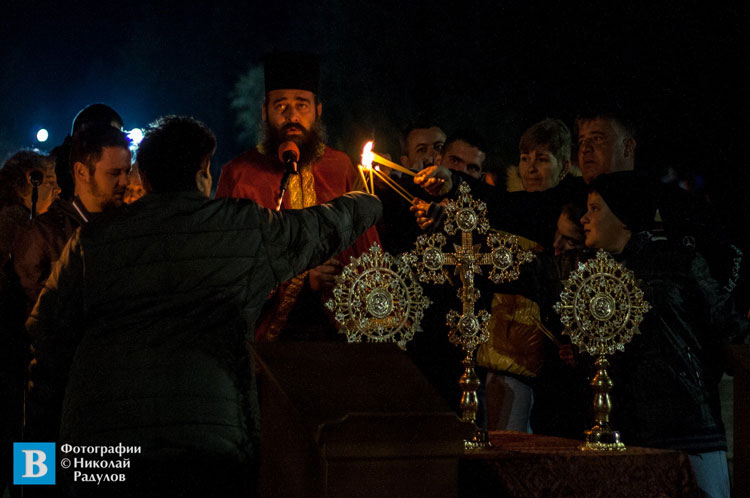С настъпването на 12-ия час отец Манолов поздрави множеството с „Христос Воскресе“. Този поздрав зазвуча като ехо измежду всички присъстващи.