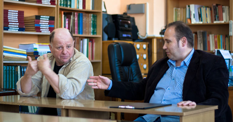 С ярко остроумие забавлява публиката Михаил Вешим в тази среща, която е пример, че организаторите трябва да се погрижат не само за госта, но и за присъствие на достатъчно зрители.