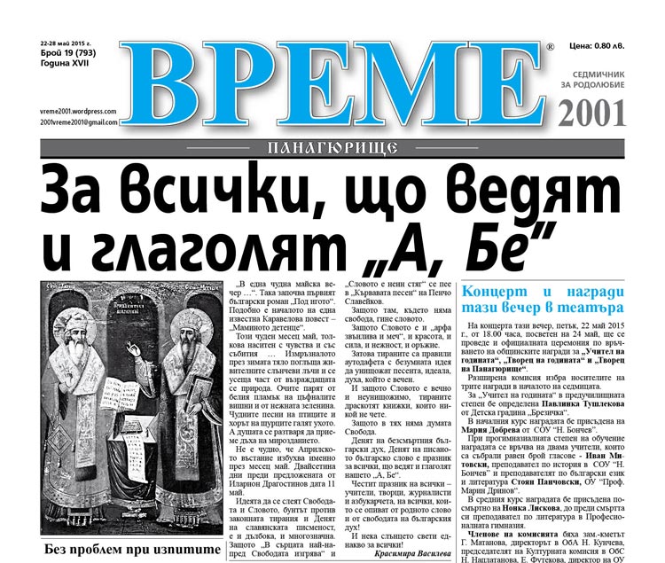 И още, и още акгуална информация, само в новия брой 19 на вестник „Време“.