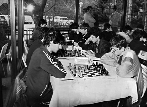 Фотоспомен от 1986 г., когато на 17-тото РОПЮ (Републиканско отборно първенство за юноши) Димитър Перчев, Петьо Караджов, Христо Костурков, Димитър Немски и Георги Тошев успяват да достигнат до 27-о място, като играчи на Шахматен клуб „Оборище“, Панагюрище