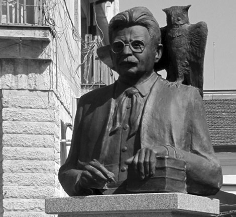 Скулптурата е дело на Георги Чапкънов – ЧАПА, който присъства на церемонията по откриването на паметника. В тази своя творба Чапа създава едно вълнуващо експресивно изображение, съчетало символиката на мъдрост, духовност и достойнство. Чапа поставя на рамото на големия писател фигурката на совата, вечният символ на мъдростта, познанието и умението да надникваш в бъдещето.