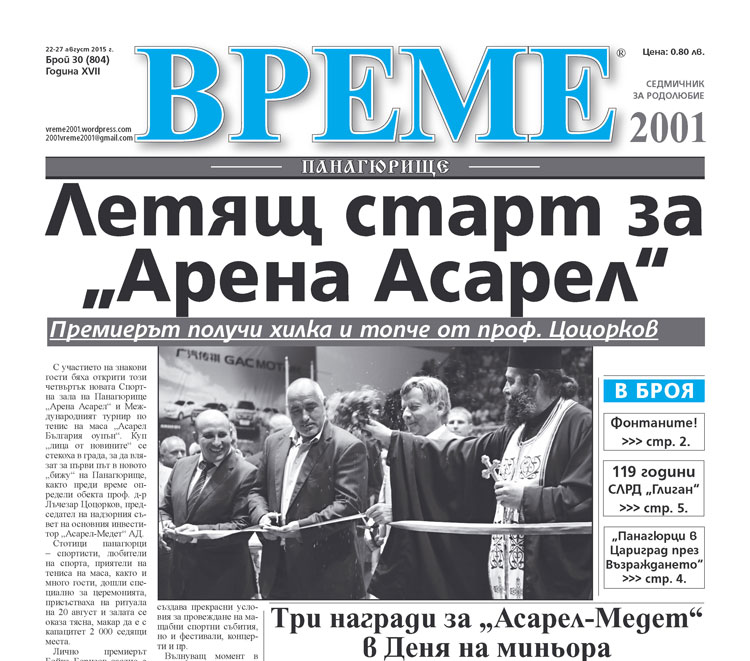 Вестник „Време“ е отново на пазара, след лятната си отпуска, с най-актуалното от събитията в общината.