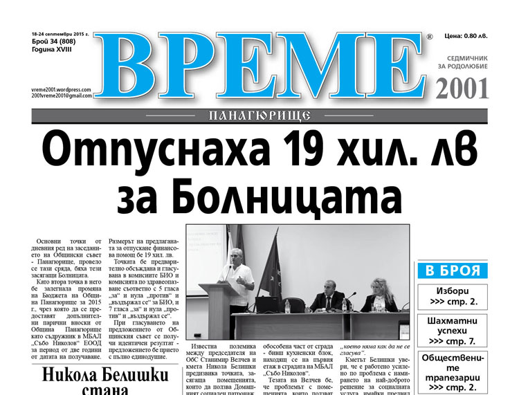 В новия 34 брой на „Време“ ще намерите актуална информация за:
