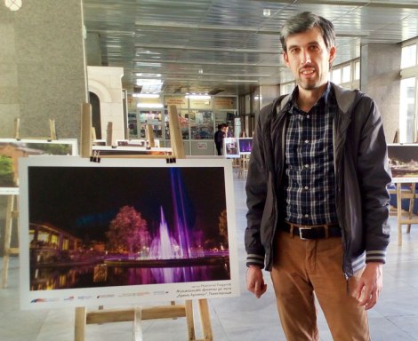 Д-р Николай Радулов пред една от фотографиите, с които участва във фотоизложбата „Фонтаните в България“