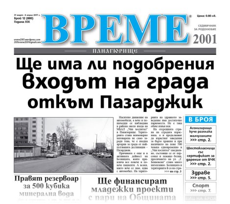 Ето някои от актуалните теми от седмицата, които намериха място в новия брой 12 на вестник „Време“: