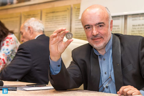 Кметът Никола Белишки подари на Лазар Мурджев паметния знак на Панагюрище – копие на кокардата на Георги Нейчев с надпис „Свобода или смърт”