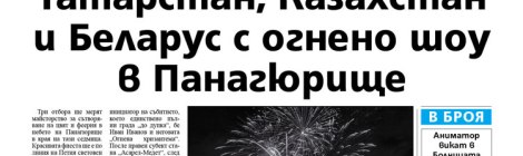 Вижте някои от актуалните теми, които намериха място на страниците в новия брой 20 на вестник „Време“: Татарстан, Казахстан и Беларус с огнено шоу в Панагюрище; Аниматор викат в Болницата […]
