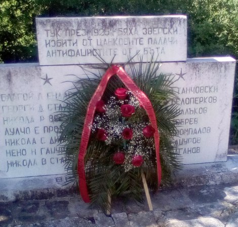 Цветя пред паметника на загиналите през 1925 г. в Бъта