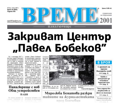 Ето някои от актуалните заглавия, които ще откриете в новия 25 брой на вестник „Време“: