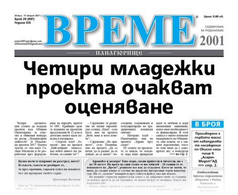 Ето някои от актуалните теми от седмицата, които намериха място в новия брой 29 на вестник „Време“: