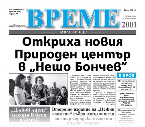 Ето в някои от актуалните заглавия, които намериха място в новия брой 38 на вестник „Време“: