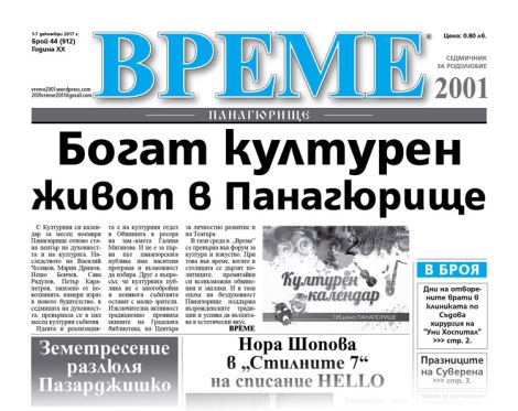 Ето в някои от актуалните заглавия, които намериха място в новия брой 44 на вестник „Време“: