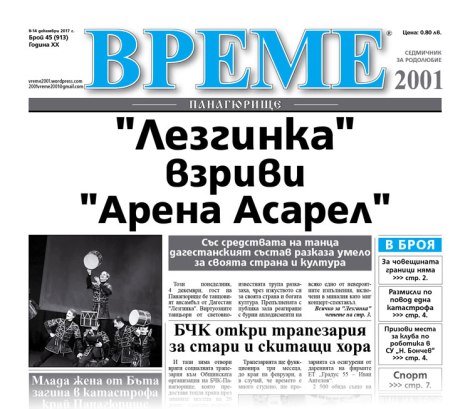 Ето в някои от актуалните заглавия, които намериха място в новия брой 45 на вестник „Време“: