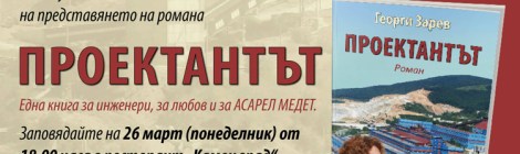 Идния понеделник, 26 март, в ресторанта на хотел „Каменград“ ще се състои представянето на романа „Проектантът“ на Георги Зарев