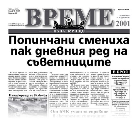Ето някои от актуалните теми, които намериха място в новия брой 16 на вестник „Време“: