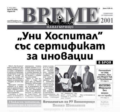 Вижте някои от актуалните теми, които намериха място в новия брой 22 на вестник „Време“: