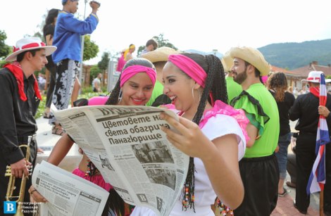 Танцьорите и музикантите от костариканскатта група „Kämuk“, които гостуваха на фестивала „Пъстър свят“, разгърнаха с интерес страниците на вестник „Време“. В настоящия брой те откриха интересно интервю с един от членовете на групата – Ерик Бариос. Зарадваха се на и своите снимки. Всеки един от тях получи брой на вестник „Време“, който ще отнесе в родната Коста Рика, като един топъл спомен от едно незабравимо лято, от един незабравим град и гостоприемни приятели.