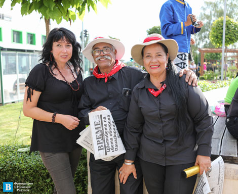 Танцьорите и музикантите от костариканскатта група „Kämuk“, които гостуваха на фестивала „Пъстър свят“, разгърнаха с интерес страниците на вестник „Време“. В настоящия брой те откриха интересно интервю с един от членовете на групата – Ерик Бариос. Зарадваха се на и своите снимки. Всеки един от тях получи брой на вестник „Време“, който ще отнесе в родната Коста Рика, като един топъл спомен от едно незабравимо лято, от един незабравим град и гостоприемни приятели.