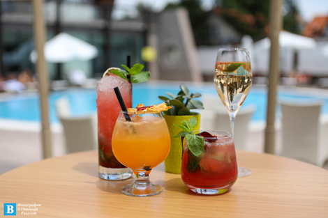 В съботната вечер, гостите на панагюрския хотел можеха да опитат истински коктейл-специалитети – имаше дори такъв, който в съставките си включваше и захарен памук. Съставки като ликьор от дренки и ликьор от трънки, пюре от ягоди са част от неустоимите напитки, които барманите приготвяха по много атрактивен начин.