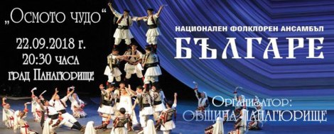 По повод 110-та годишнина от обявяването на Независимостта на Република България, Община Панагюрище организира за жителите и гостите на града концерт-спектакъл „Осмото чудо“ на Национален фолклорен ансамбъл „Българе“. Събитието ще се състои от 20:30 часа на площад „20-ти април“.