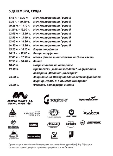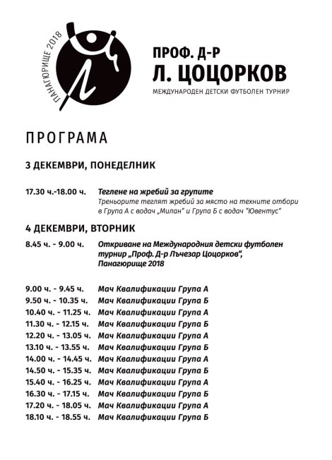 Вижте програмата на Международния детски футболен турнир „Проф. д-р Лъчезар Цоцорков“