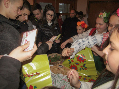 И ако Благой Елшишки си знае ролята и я изпълнява всяка година с удоволствие, то работата на журите винаги е много отговорна, още повече че съставът е парличан. И тази година председател на журито бе кметът Георги Александров, който официално поздрави гостите и ги посрещна преди празничната вечер във фоайето на Читалището. Гостите бяха посрещнати от малките самодейци с ритуал и подаръци. Мария Кършева им разказа за бътовското Читалище и им връчи мартенички, пакетчета с шарена сол и други сувенири. После Мария им показа всички зали на читалището и им разказа малко от историята на тази културна институция.