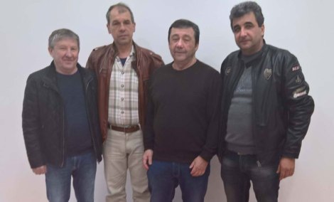На снимката отляво надясно – бащата на Владимир Кононенко от Киргизия, близък на президента на Киргизия, гросмайстор Крум Георгиев, българският гражданин Михаил Шерешевски и Христо Костурков, председател на ШК „Оборище“.