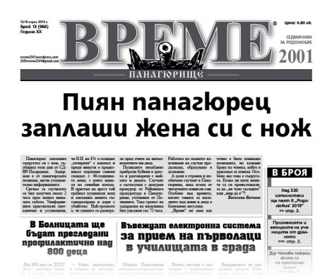 Вижте кои са актуалните теми, които намериха място в тазседмичния брой 13 на вестник „Време“: