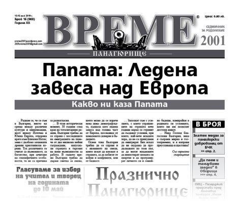 Вижте кои са актуалните теми, които намериха място в тазседмичния брой 16 на вестник „Време“: