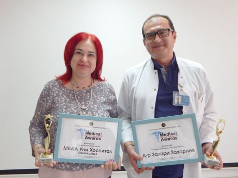 На Националните медицински награди `2016 МБАЛ „Уни Хоспитал“ получи наградата в категория „Медицински иновации“.