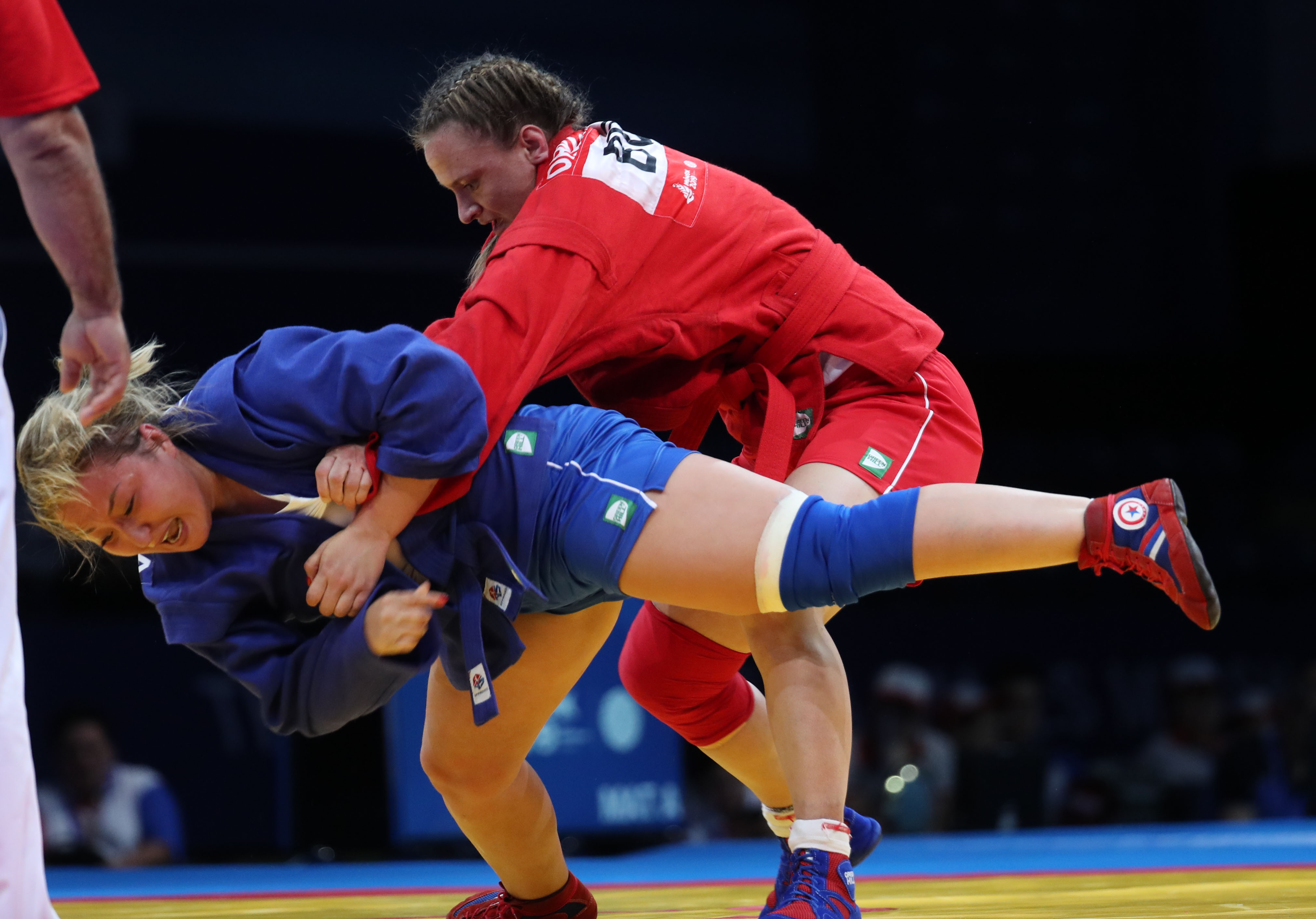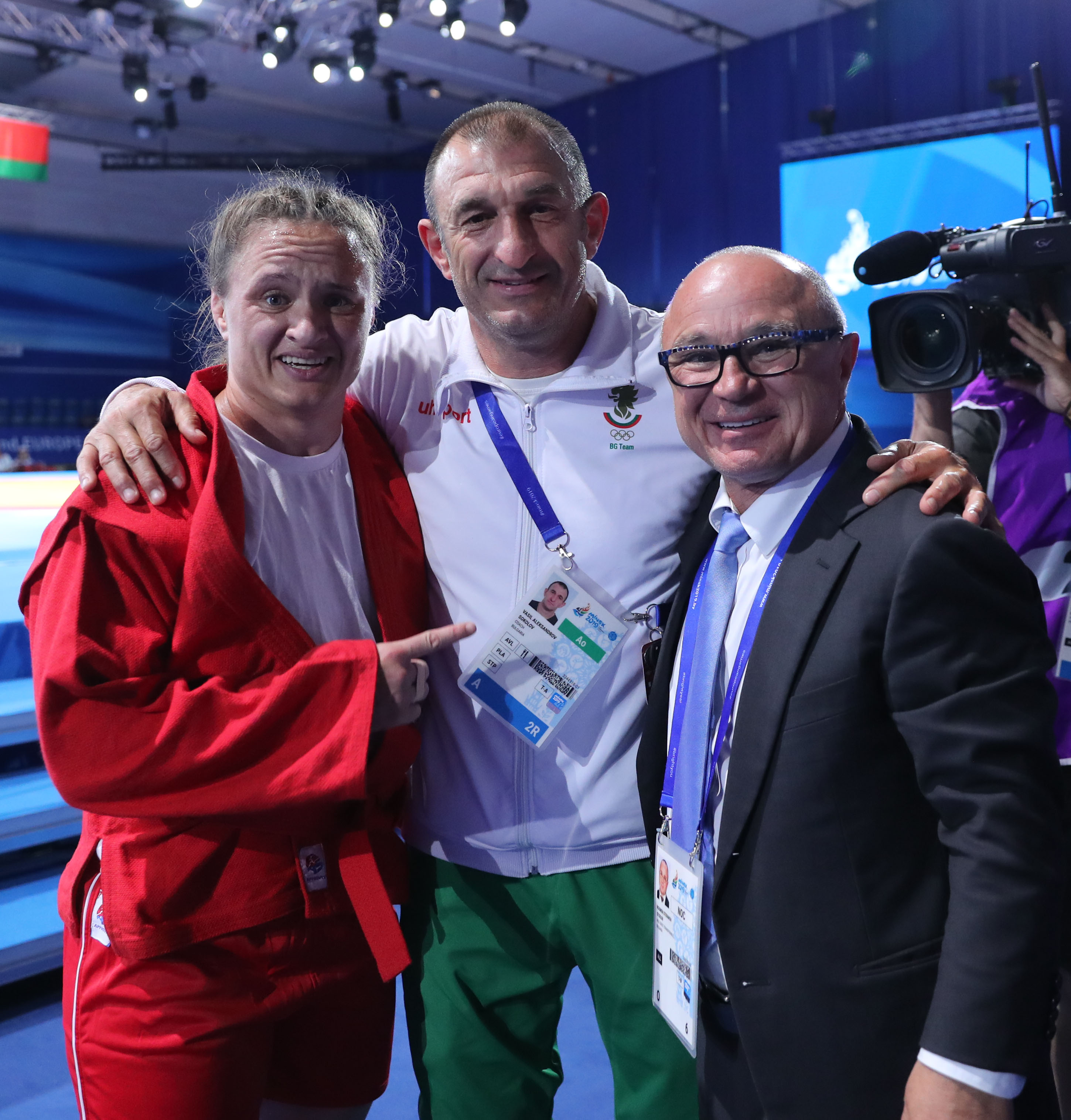 Мария Оряшкова спечели първия медал за България на Европейските игри в Минск. Деветкратната европейска и четирикратна световна шампионка в самбото стигна до титлата в категория до 80 килограма, след като на финала се справи с конкуренцията на рускинята Жанара Кусанова. Рускинята първа реализира точка, но българката отвърна и така си осигури златото.