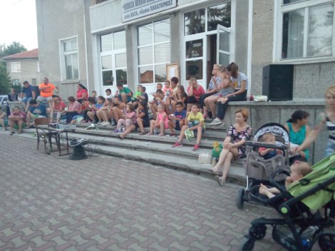 Анимационните филмчета укротиха и най-палавите във вторник вечерта. Насядали на стълбите пред читалището в Бъта малчуганите изгледаха серия любими детски филми. Най-малките бяха придружени от мама и тате.