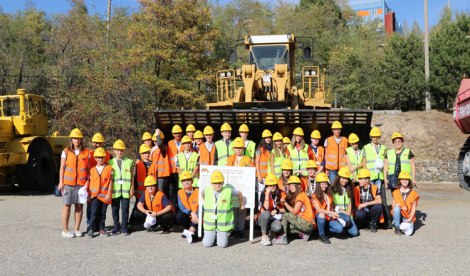 След открития урок по география на тема „Полезни изкопаеми“ седмокласниците разгледаха двете фирмени експозиции на „Асарел-Медет“АД и се запознаха с историята и развитието на компанията. Кофата на един от „пенсионираните“ челни товарачи се оказа малка да побере всички 33 деца, които посетиха дружеството и си направиха куп селфита за спомен пред изведените от употреба минни машини и оборудване.