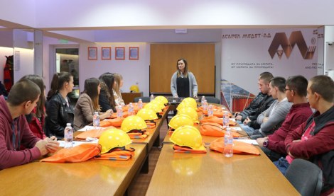 Младите мениджъри бяха посрещнати от и.д. директор „Човешки ресурси“ Нели Мърхова, пред която споделиха какво ги е мотивирало, за да кандидатстват за съответните позиции, в които бяха разпределени. Много непринудена бе реакцията на един от учениците, който възкликна „Много исках да видя белазите!“. След краткото опознаване всички разгледаха фирмените експозиции на дружеството, където разгледаха машините ветерани на предприятието и се запознаха с експонати, фотоси, документи и награди, намерили място във фирмената сбирка.