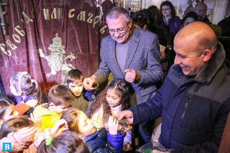 От името на Община Панагюрище и Историческия музей децата получиха сувенири, изобразяващи лъва от знамето, шито от Райна Княгиня.