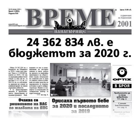 Вижте кои са актуалните теми, намерили място в третия за 2020 брой на вестник „Време“:
