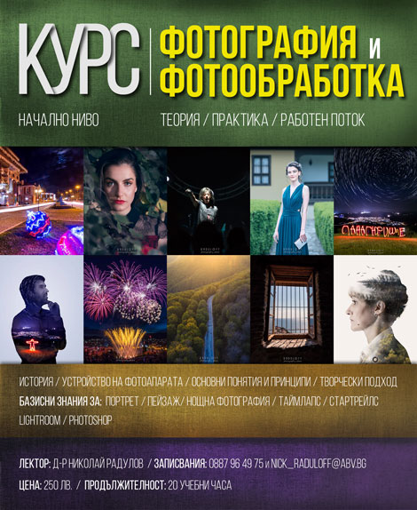 – Всеки желаещ любител фотограф може да се запише на този курс – като заяви желанието си на имейл nick_raduloff@abv.bg, както и чрез формата са контакт в специалната страница за събитието в сайта ми. Там може да се види и пълната информация за курса, както и самата програма. Всичко това е налично и в страницата на събитието във Фейсбук.