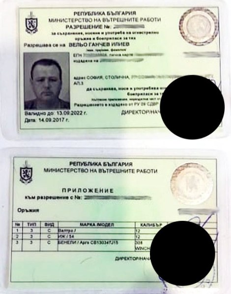 В потвърждение на думите си Вельо Илиев ни изпрати копия от разрешителното за трите притежавани от него ловни оръжия и списък на същите.