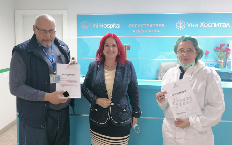 Управителят на МБАЛ „Уни Хоспитал“ д-р Красимира Чачова-Ранчева връчи почетни знаци и благодарствени адреси на медици от лечебното заведение.