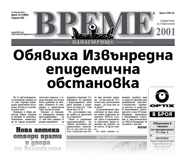 Вижте кои са актуалните теми, намерили място в брой 13 на вестник „Време 2001“: