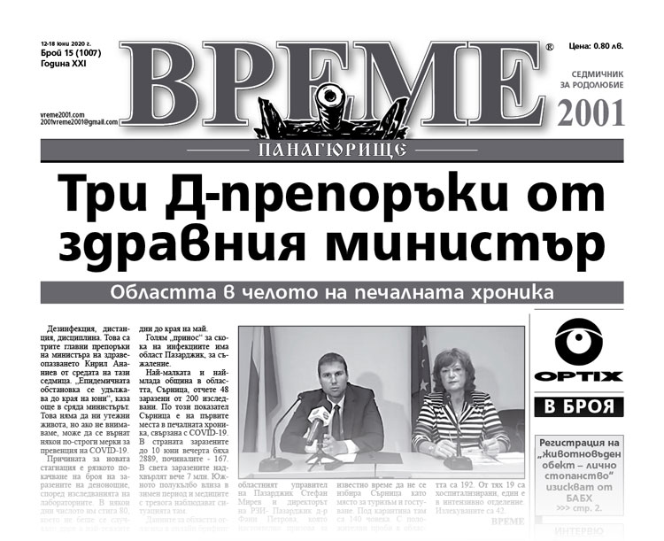 Вижте кои са актуалните теми, намерили място в брой 15 на вестник „Време 2001“: