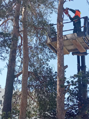 Два изсъхнали бели бора находящи се в двора на МБАЛ „Уни Хоспитал“ премахнаха служители от спасителната служба в „Асарел-Медет“ АД .