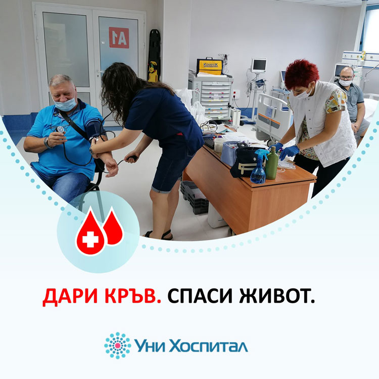 На 21 октомври (сряда) от 09:00 до 12:00 часа в МБАЛ „Уни Хоспитал“ ще има кръводарителска акция, съвместно с Районен център по трансфузионна хематология – Пловдив. В нея наред със служители на лечебното заведение, могат да се включат и близки на пациенти, които се нуждаят от кръвопреливане, граждани.