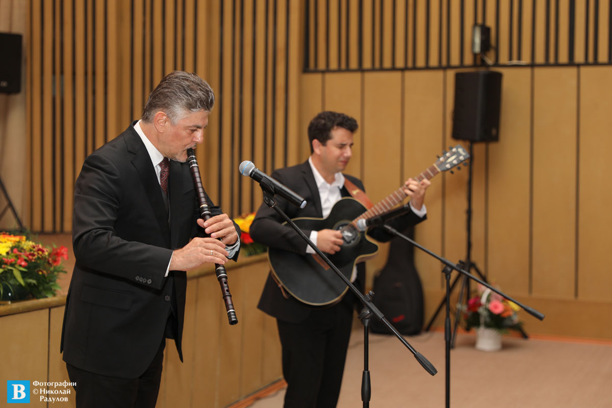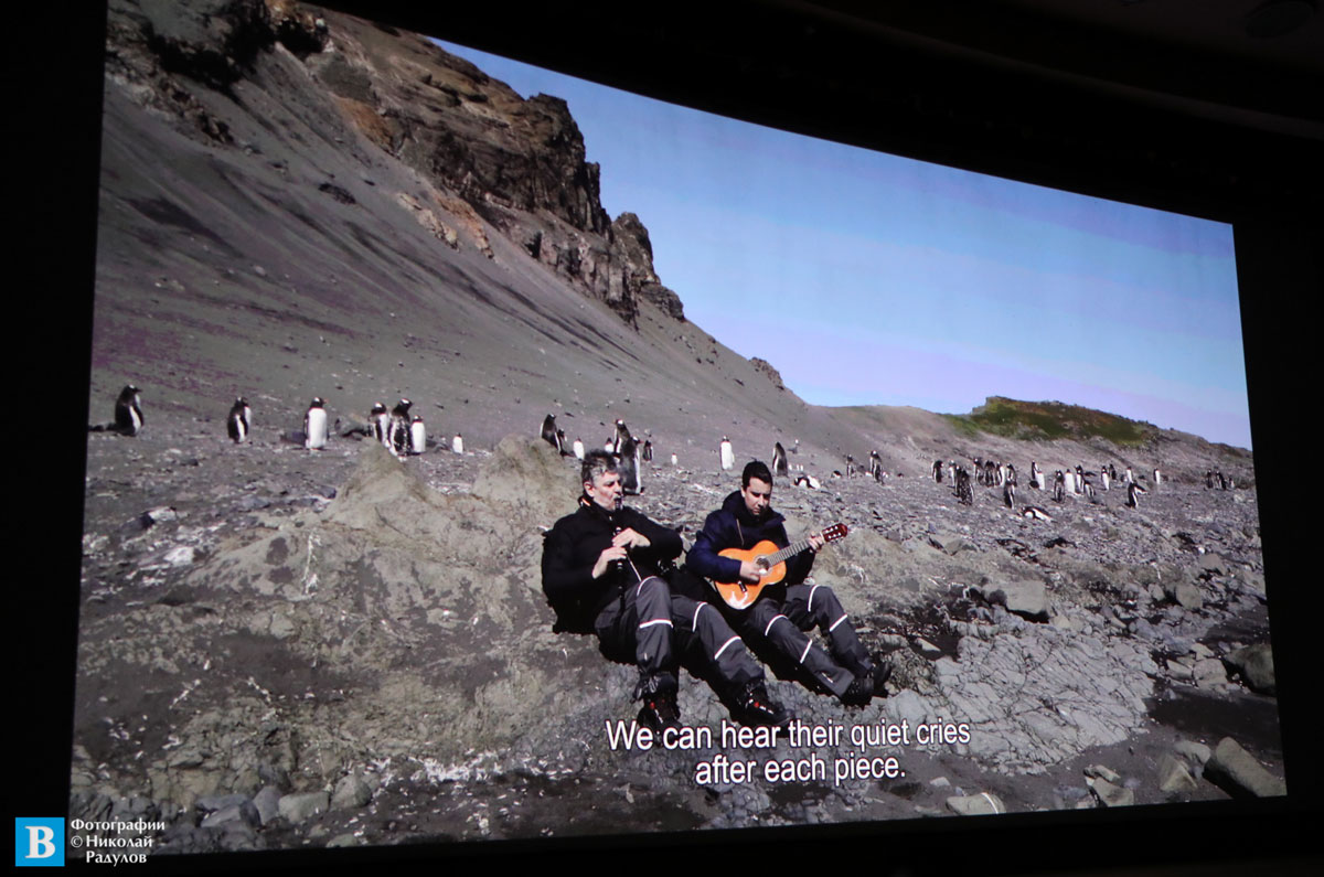 Като прелюдия към предстоящата прожекция Теодосий Спасов и китаристът Християн Цвятков изпълниха две от композициите си, създадени по време на престоя им на Ледения континент – „Да те чакам вечно мога аз” и „Танцът на пингвините”.