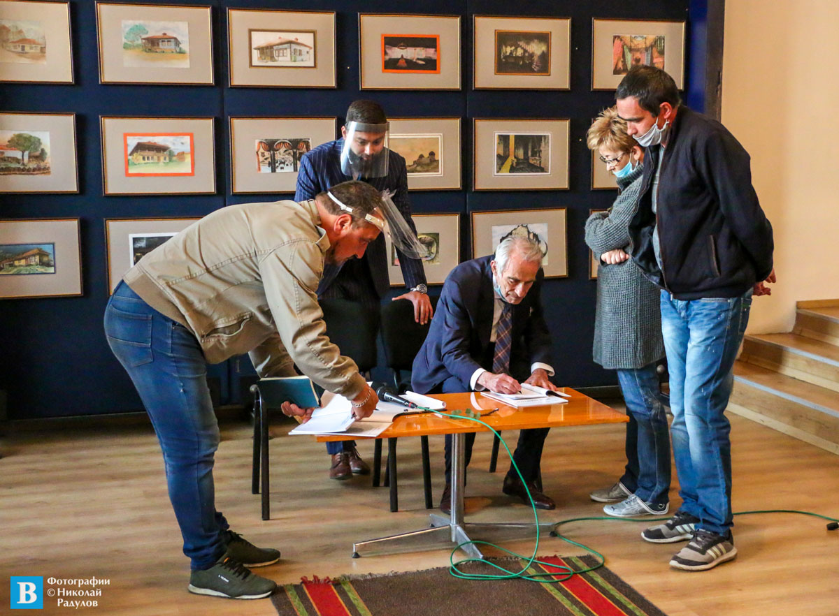 „Не е честа срещата ни с 90-годишен панагюрец с толкова богат творчески път, учен, общественик, деец в няколко жанра! Респект към достойния живот, който лъха навсякъде около вас“, каза заместник-кметът „Хуманитарни дейности“ на община Панагюрище Галина Матанова. Тя връчи на бележития наш съгражданин юбилейния паметен знак, изработен по повод 140 години от избухването на Априлското въстание – копие на кокардата на Георги Нейчев – златен лъв, в краката му турското знаме с полумесеца и надпис „Свобода или смърт”.