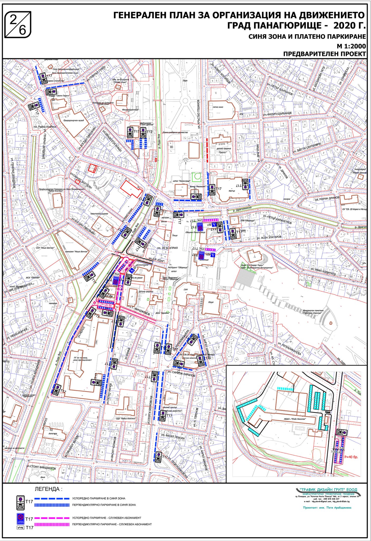 В следната схема на града може да се видят предвидените места за „Синя зона“.