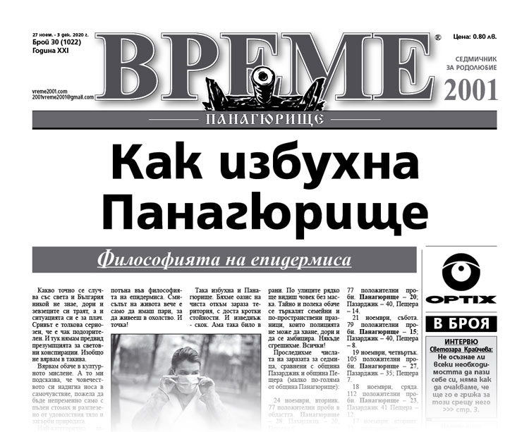 Вижте някои от актуалните теми, намерили място в брой 30 на вестник „Време 2001“: