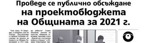 Вижте някои от актуалните теми, намерили място в брой 4 за 2021 г. на вестник „Време 2001“: Проведе се публично обсъждане на проектобюджета на Общината за 2021 г.; Панагюрище с […]