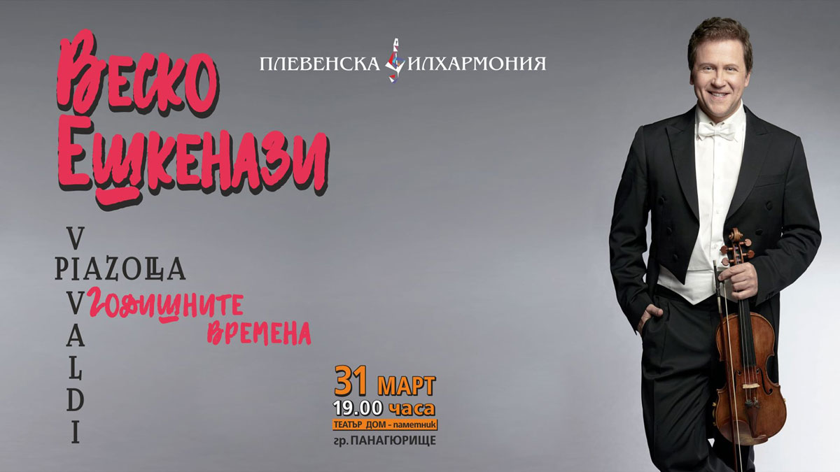 Публикувано на 10.03.2021 в 1200 × 675 в Виртуозът на цигулката Веско Ешкенази гостува тук с концерт с Плевенската филхармония